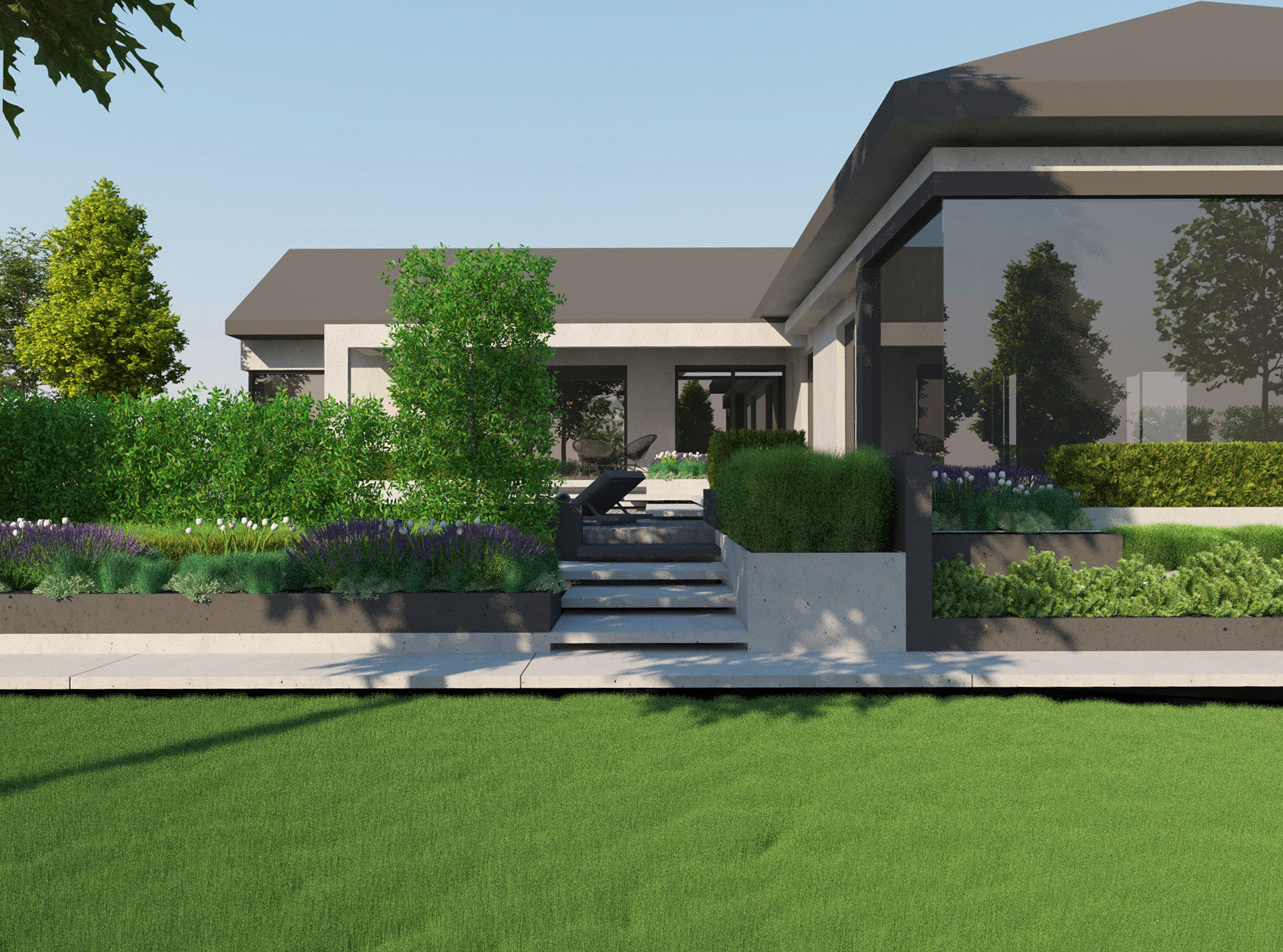 Zajmujemy się kompleksowym projektowaniem zagospodarowania terenu wokół budynku z uwzględnieniem takich elementów jak ogrodzenia, nawierzchnie, tarasy, altany, baseny, oświetlenie, domki dla dzieci czy obiekty małej architektury. Działamy na terenie Warszawy, Poznania, Łodzi, Częstochowy, Katowic oraz okolic.